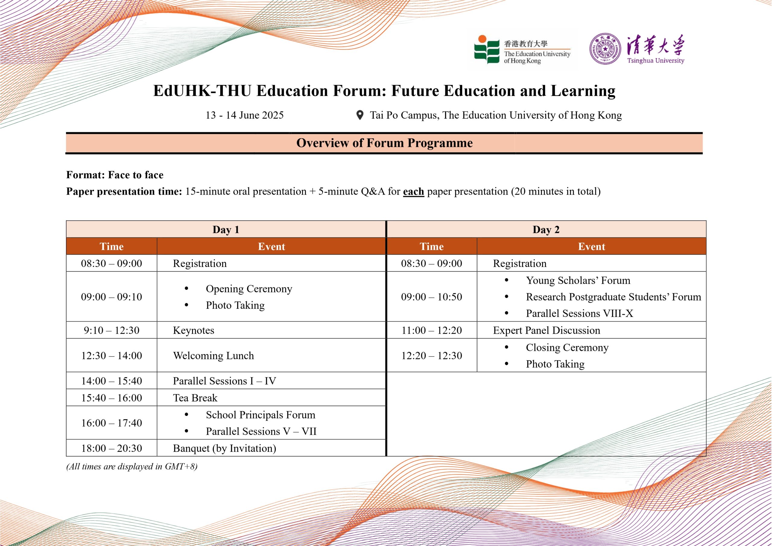 • 每節主題演講限時25分鐘(包括問答時間)。